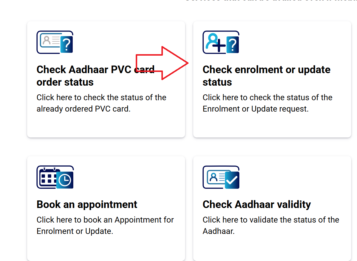 | Online Services | Aadhaar services like download, update, status check, and e-KYC are available online |